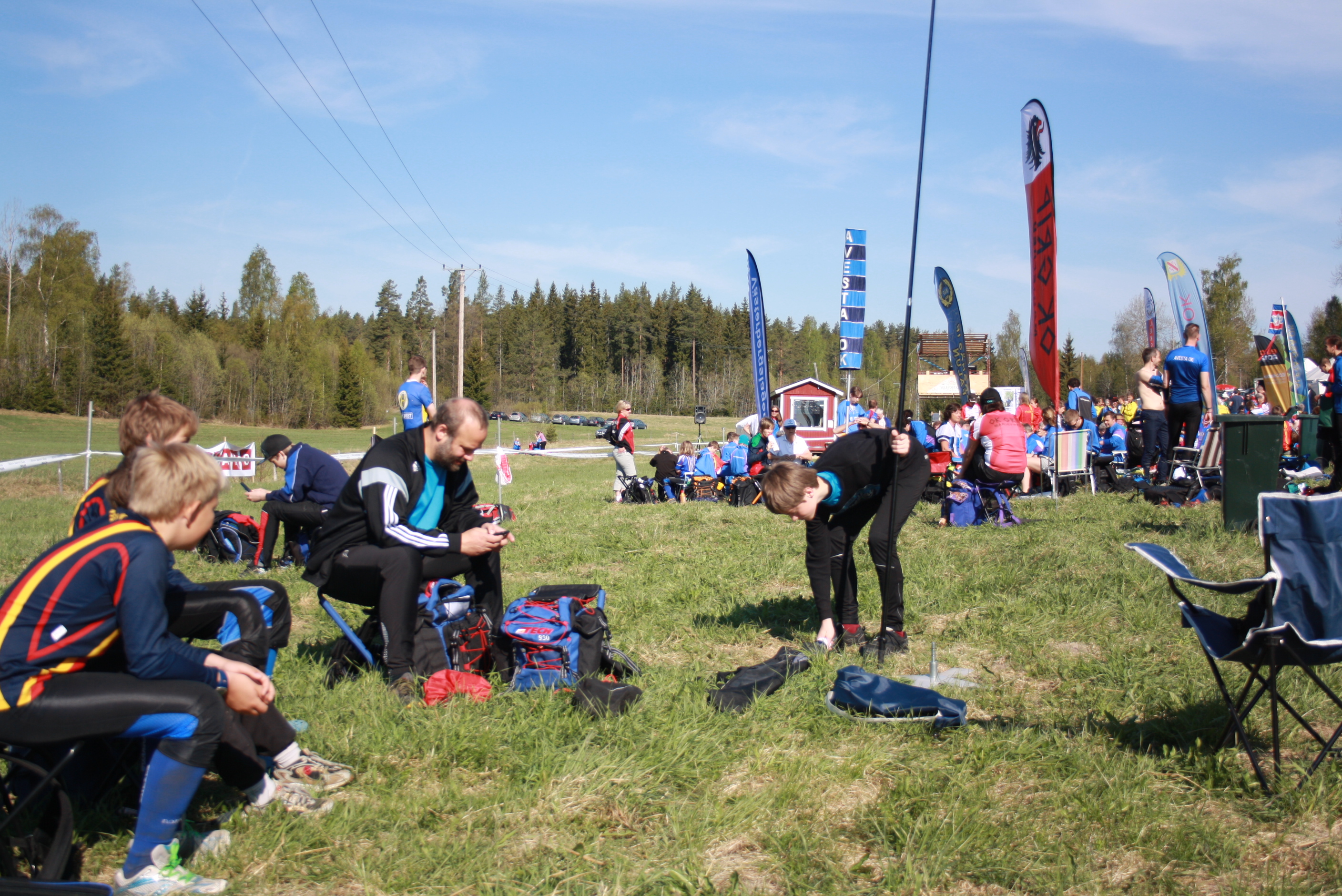 På söndag morgon var det lika soligt och varmt och fint. Det var samma arena, men starten var på en annan del av kartan. Jag hade valt att springa Ö5, en röd 4400m-bana; H40 långdistans känns alldeles för långt för mig i dagsläget (fast någon gång under den här säsongen ska jag göra det också…). Den här gången klarade jag orienteringen utan några större problem, Winsplits visade inte några bommar alls, jag kände väl att jag hade tappat kanske 30 sekunder på två kontroller, men annars spikade jag det mesta. Men nu var det löpningen som inte hängde med, men det där går ju att träna upp. Det kändes inte alls långt, jag hade nog trott att jag hade sprungit på kanske 45 minuter, fast det visade sig vara 67 – tiden går fort i skogen. För Jan kändes det mycket bättre på söndagen, fast resultatet var bättre på lördagen, men det visar ju bara hur svårt det är att bedöma sin egen prestation. Tim har ju fått en stor tävlingsvana och klarade sin bana galant, och även Adrian och Simon sprang sina utan större problem. Den här dagen var det en viking till med, Anders Alamaa sprang i H55, men stämplade fel och kom således tyvärr inte runt.