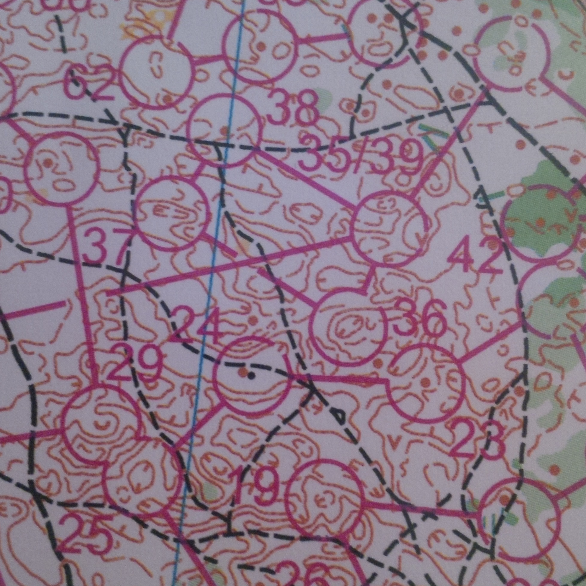 Tillbaka på småvägar till Åhus, kort vila i stugan, lite geocaching, och så iväg igen på nästa pass, den här gången till Kronoskogen omedelbart söder om Åhus. Här väntade oss en mycket rolig kontrollplockningsövning, hela 78 kontroller med ganska kort avstånd dem emellan (inte mer än 150m i snitt), syftet var att behålla fokus och att planera utgången från kontrollen redan vid ingången, det hela i fin tallskog med mycket kupering, mycket brunbild. Ingen av oss hann med alla kontroller, men vi sprang ändå tills det hade blivit för mörkt för att läsa kartan.