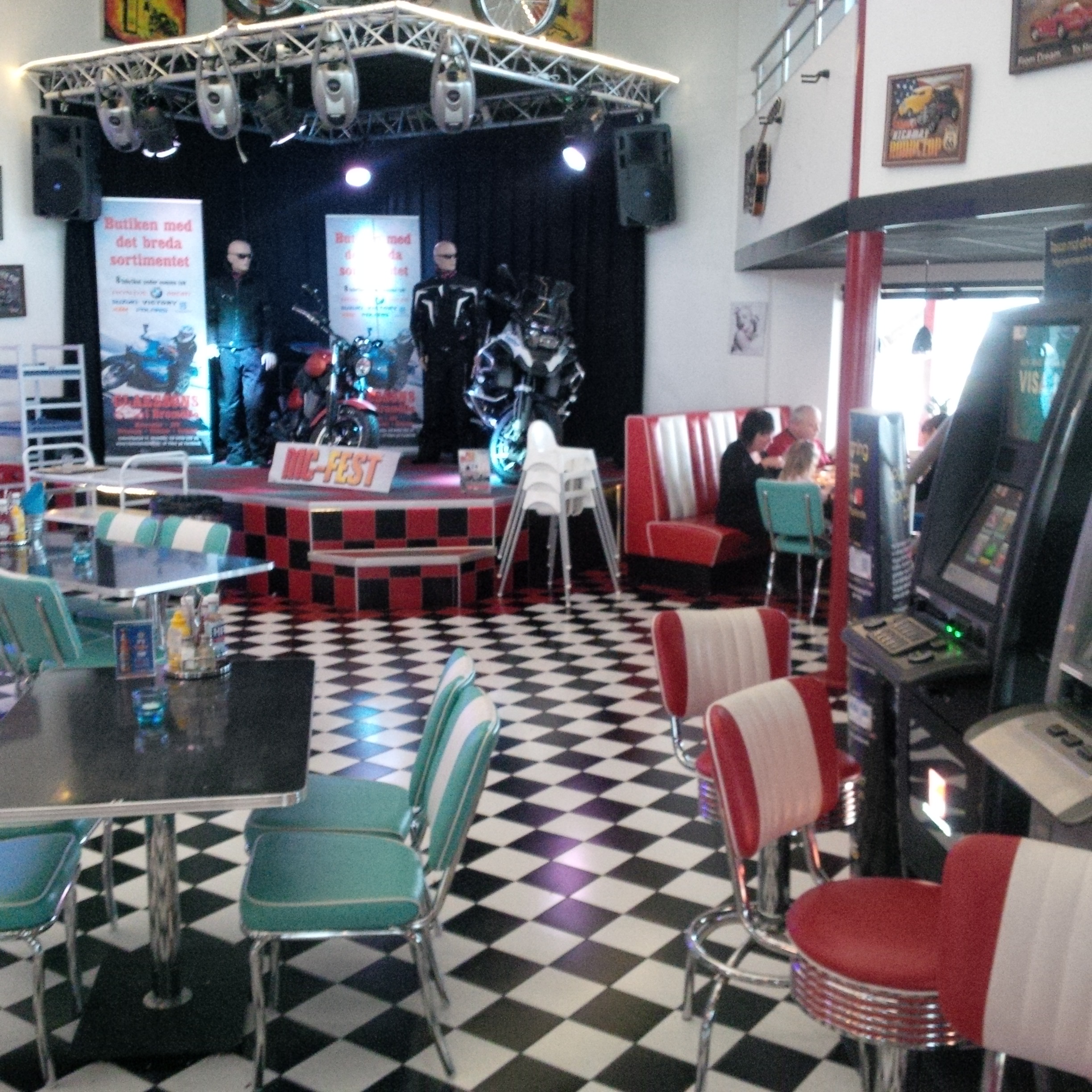 Efter genomförd övning frågade vi Foursquare om det fanns något bra matställe i närheten, och visst hittade vi något lovande – en femtiotals-diner bara några kilometer därifrån i Bromölla. Så dit drog vi, åt, och fortsatte tillbaka mot Åhus.