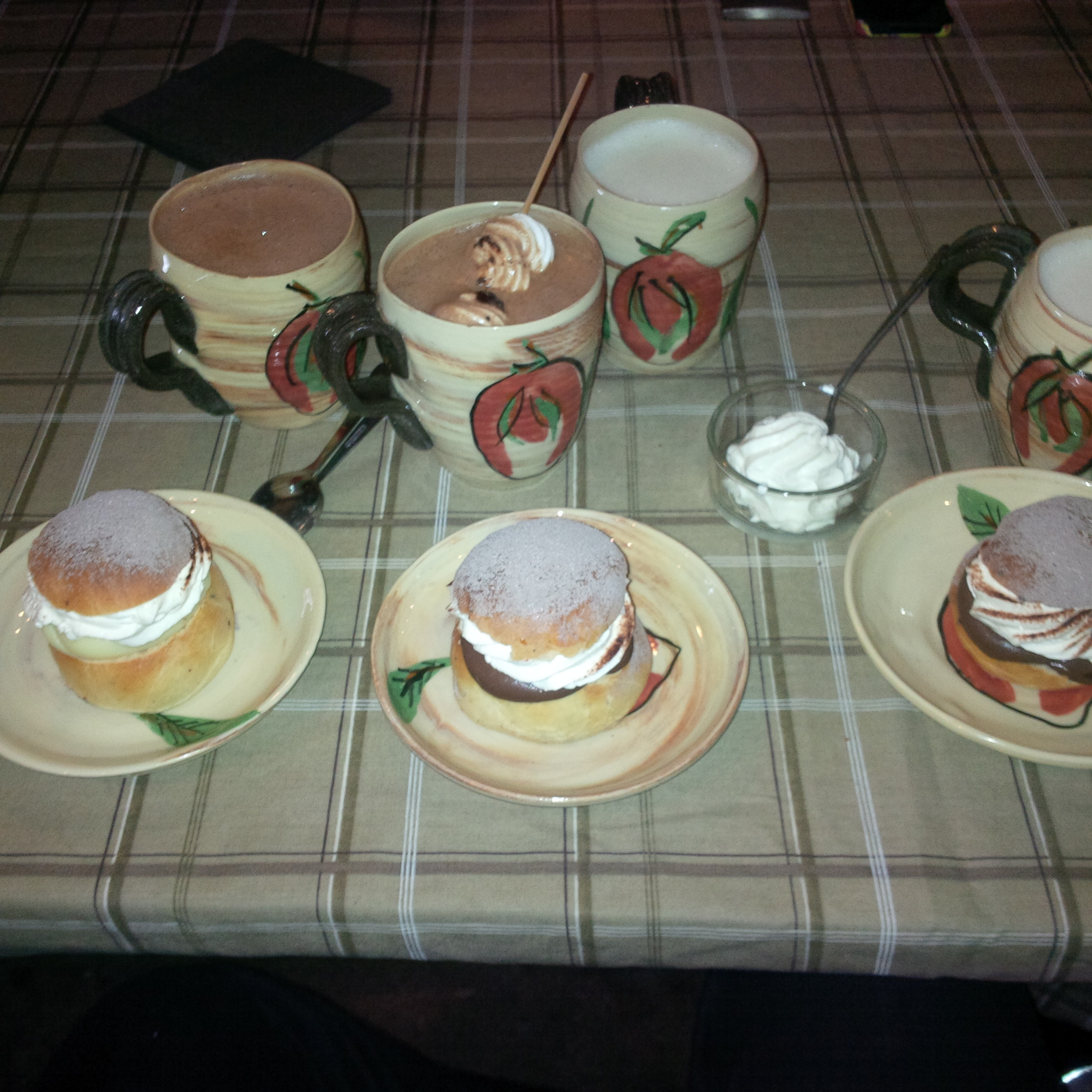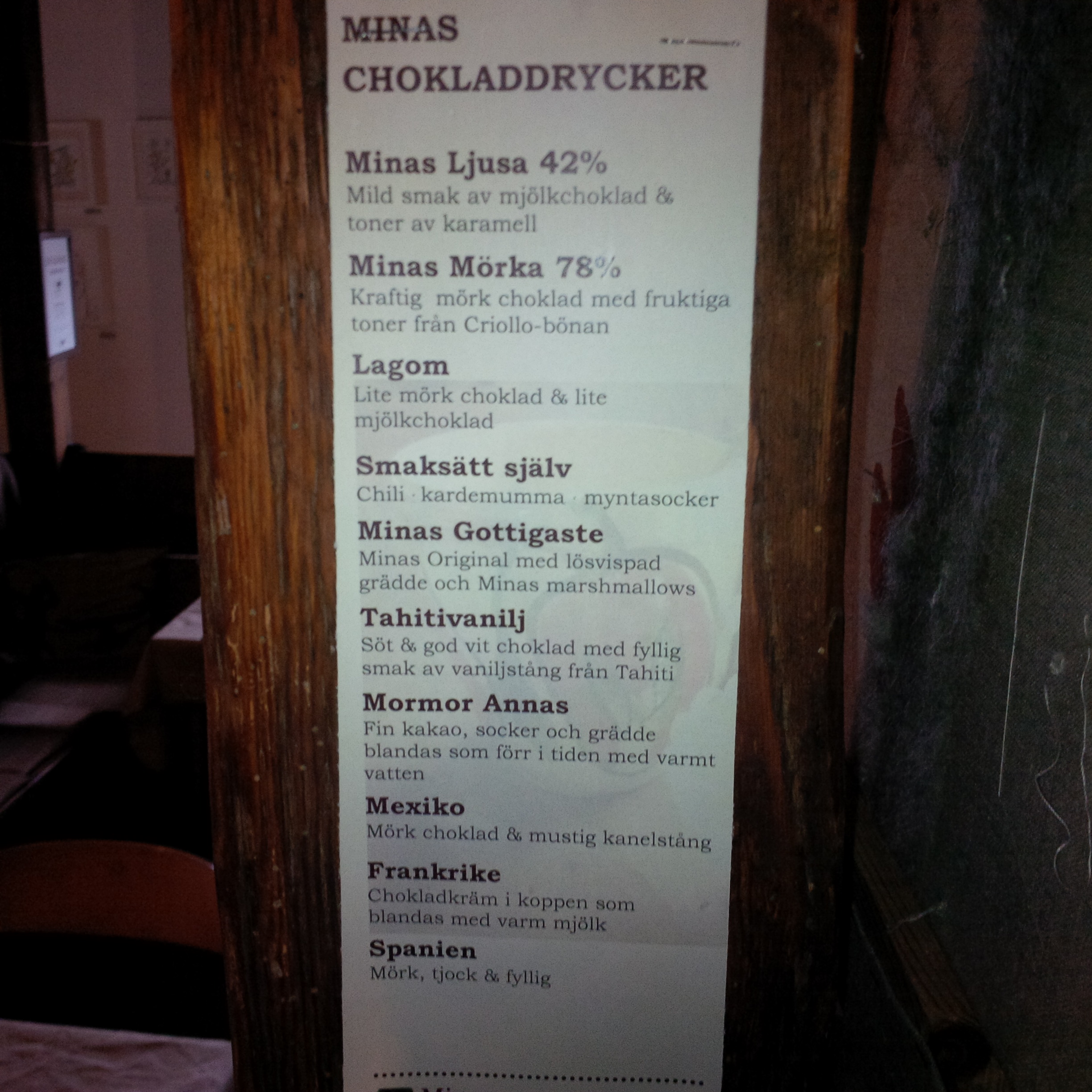 Tillbaka till stugan, snabb dusch, och så in i bilen för att ta oss till Rinkaby igen, vi skulle ha en halv timme kvar på chokladcaféet innan de skulle stänga för dagen, och då tvekar man ju inte! Blev mera varm choklad och mera chokladfyllda semlor.