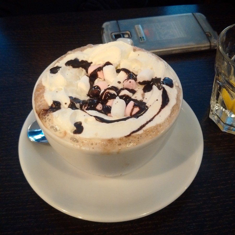 Varm choklad med marshmallows och grädde