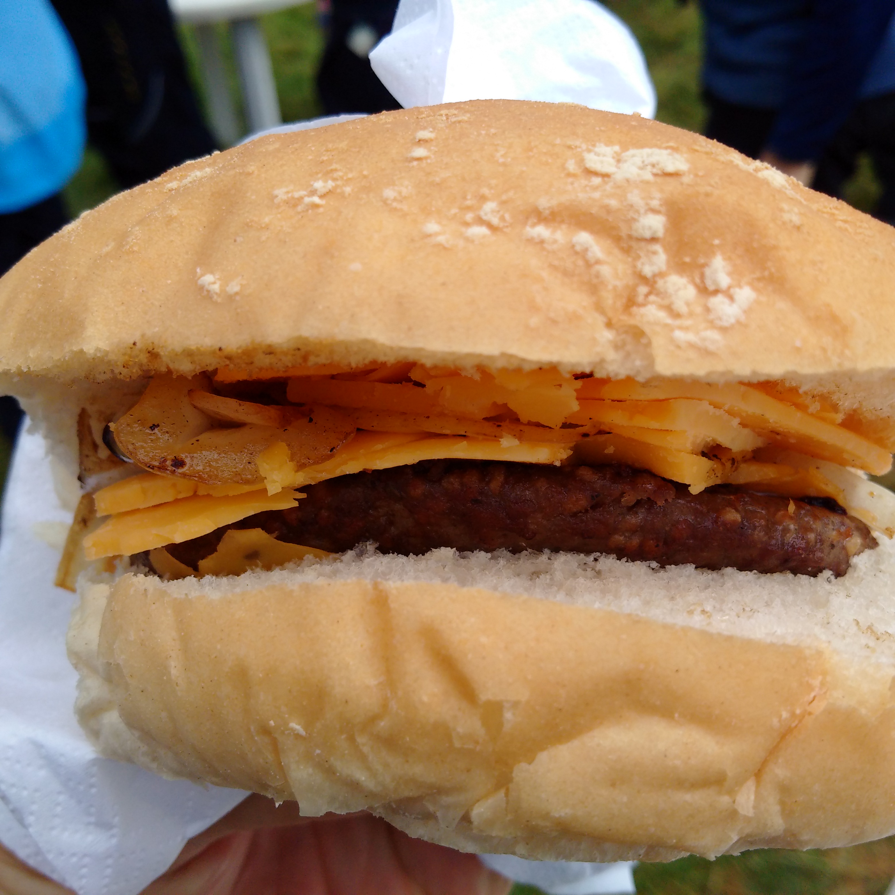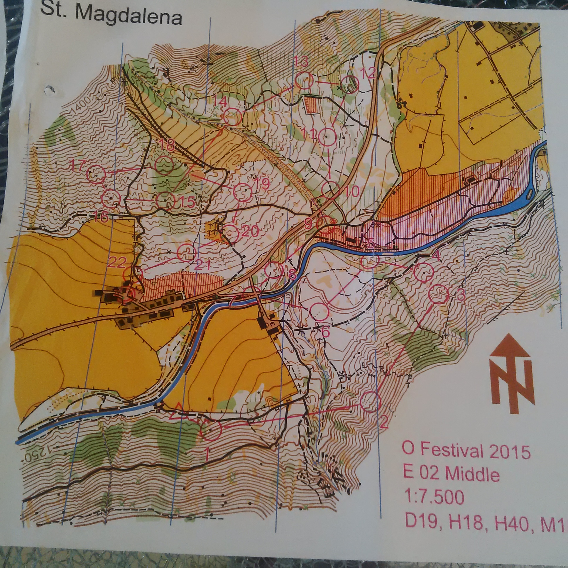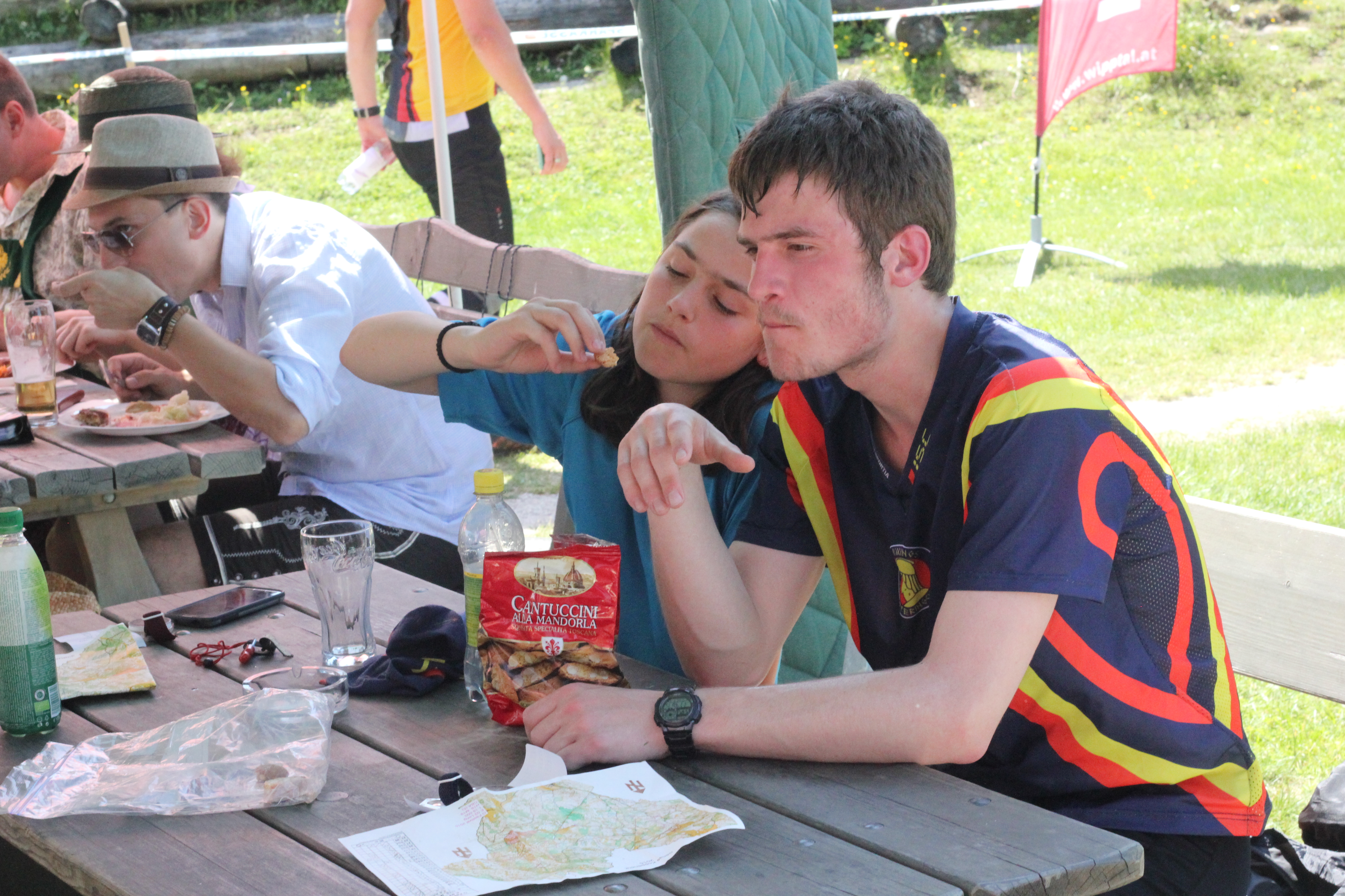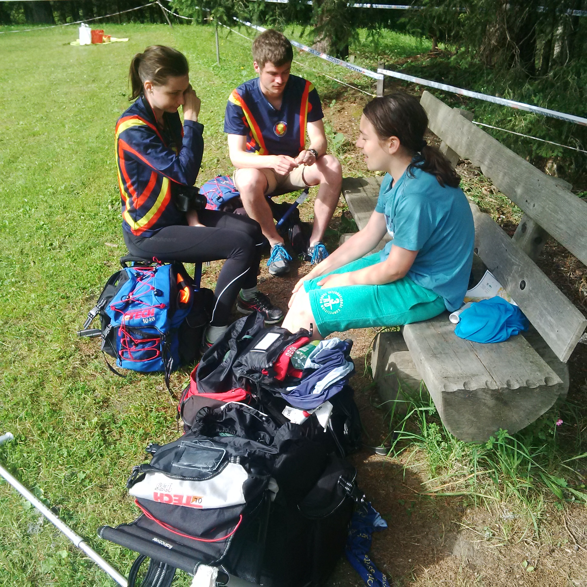 Nu följer ännu en stigning och jag har en duell med en man i min ålder, vi har inte samma kontroller, men det är tät gaffling så vi ser varandra hela tiden innan jag lyckas dra ifrån en bit i en utförsbacke. Dock gör jag en liten krok till näst sista kontrollen, och då är han ikapp. Nu följer en brant stigning uppför skogen mot en äng. Jag kör allt jag har och kommer förbi killen, och fyra stycken till. Över den sluttande (uppför, såklart) ängen, sista kontrollen, ännu en äng, och så växlingen. Tanja ropar något om Tims insulinpump som jag inte förstår, all fokus jag har nu är riktad mot andning och överlevnad.