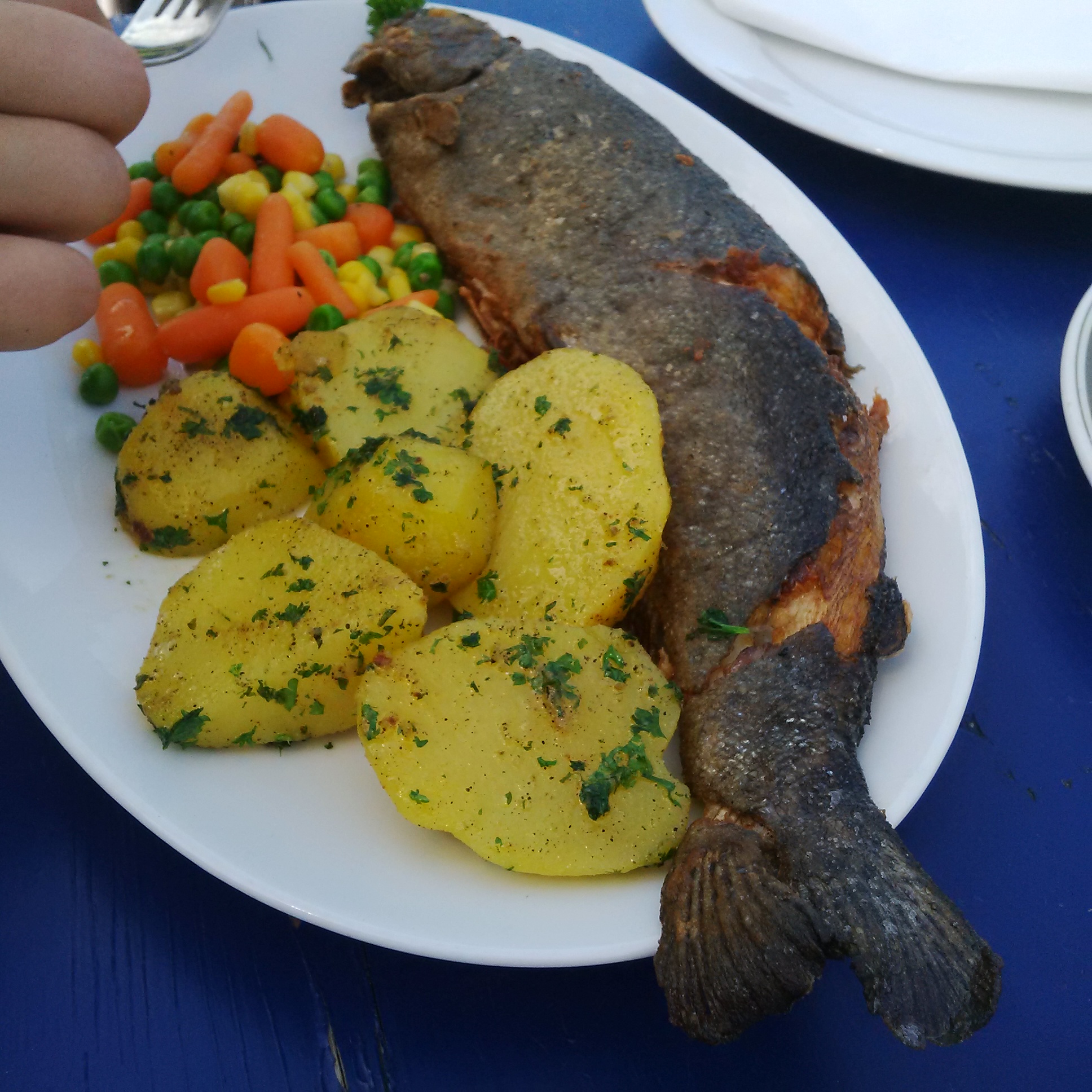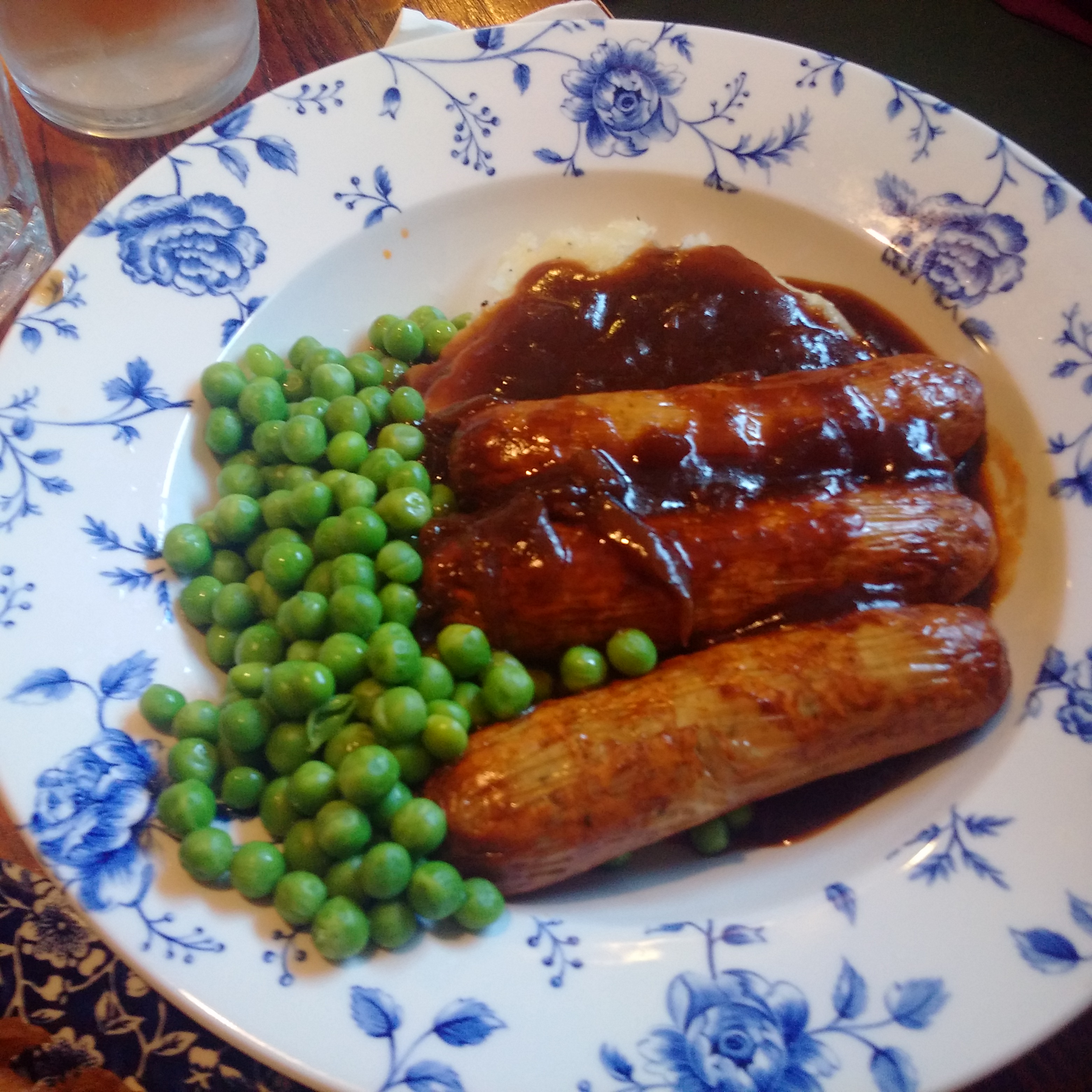 På väg dit har vi passerat en pub som såg mysigt ut, så vi går dit i (igen!) regnet, och visst är det mysigt, ölet lokalt, så det blir ännu en bra måltid.