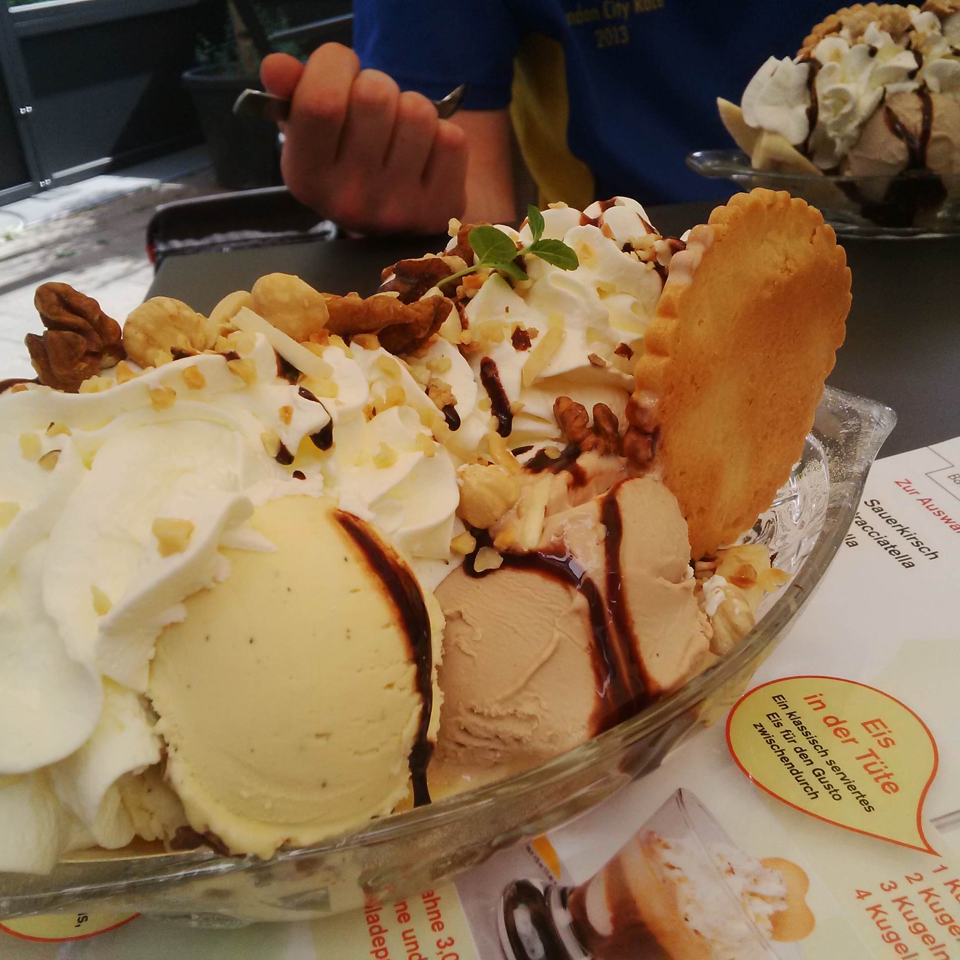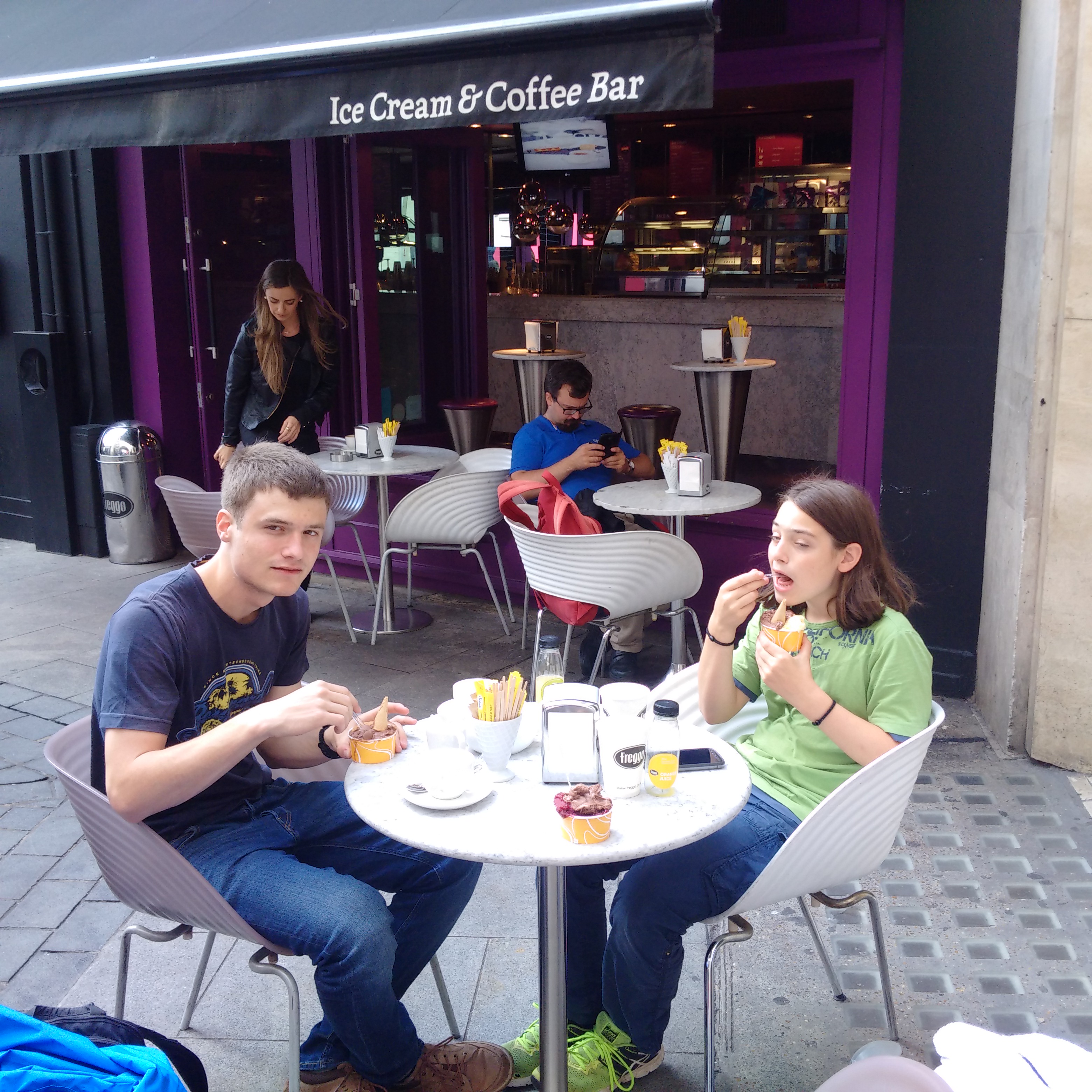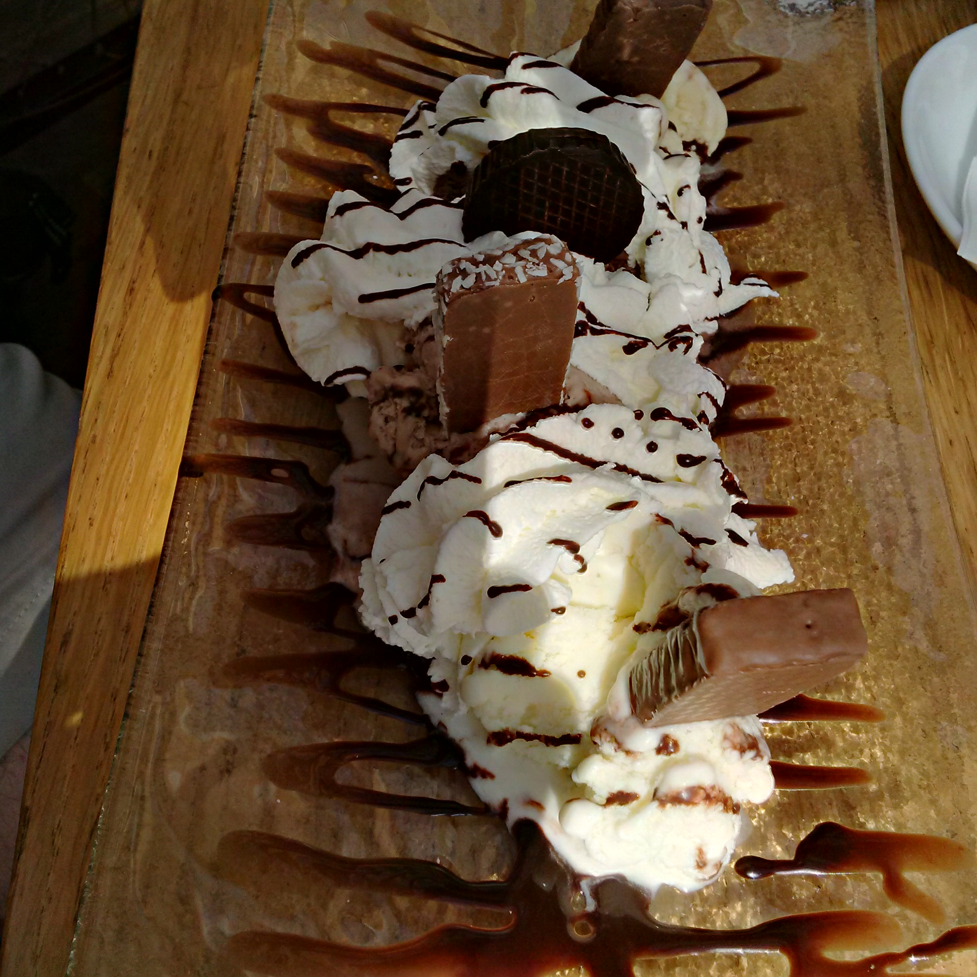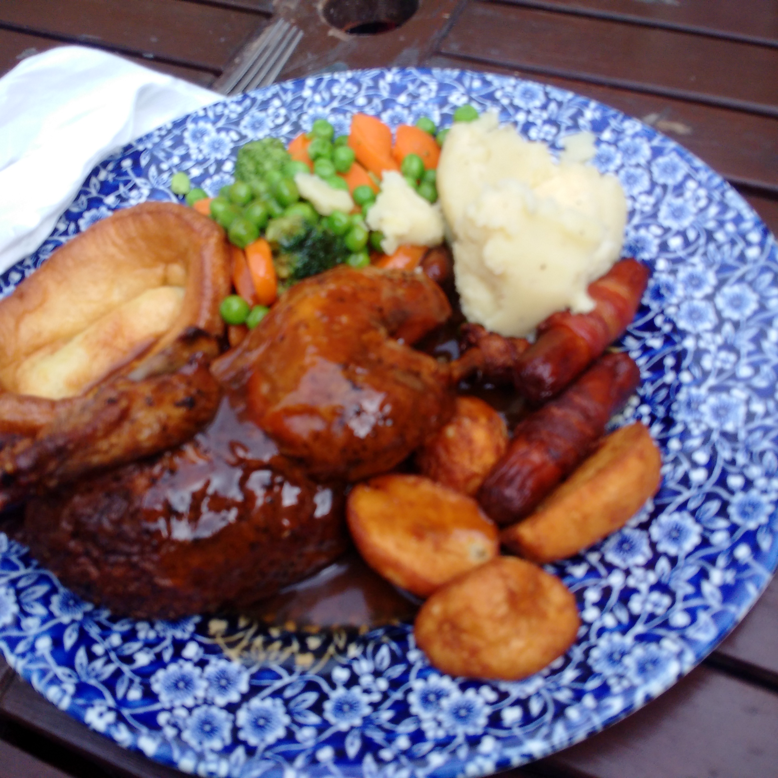 Tillbaka i lägenheten blir det den sedvanliga snabba duschen och finkläder, sedan åker vi till The Three Horseshoes för att inmundiga Sunday Roast – ingen söndag i England utan Sunday Roast! Efteråt åker vi till nästa by norrut, Ripley, där jag hade sett en skylt med ”World-Famous Ice Cream” dagen innan. Den visar sig lite svår att hitta, och så märklig är den sedan inte heller. Men glass är glass. Och vi har ju påskäggsletningen hemma i lägenheten kvar att genomföra.