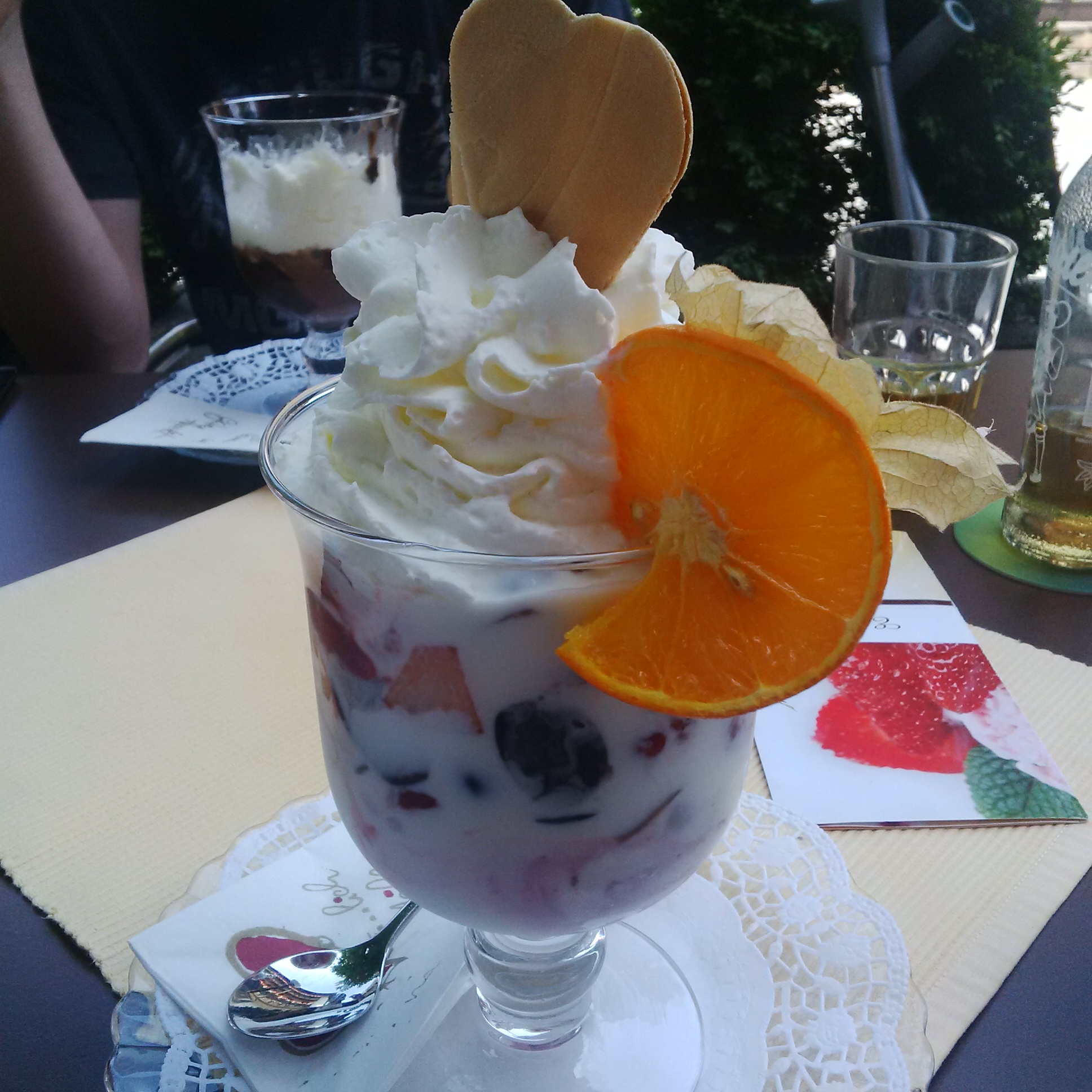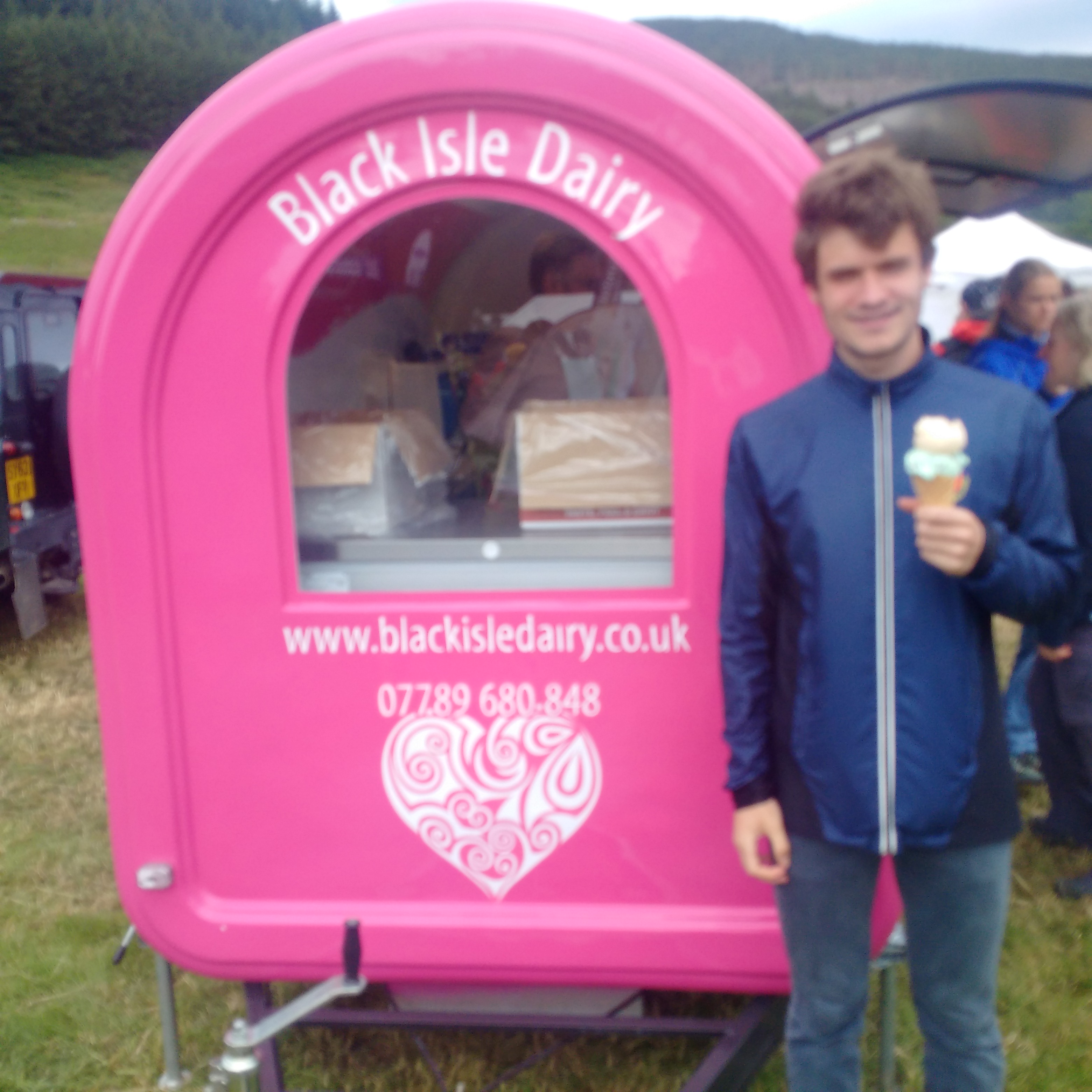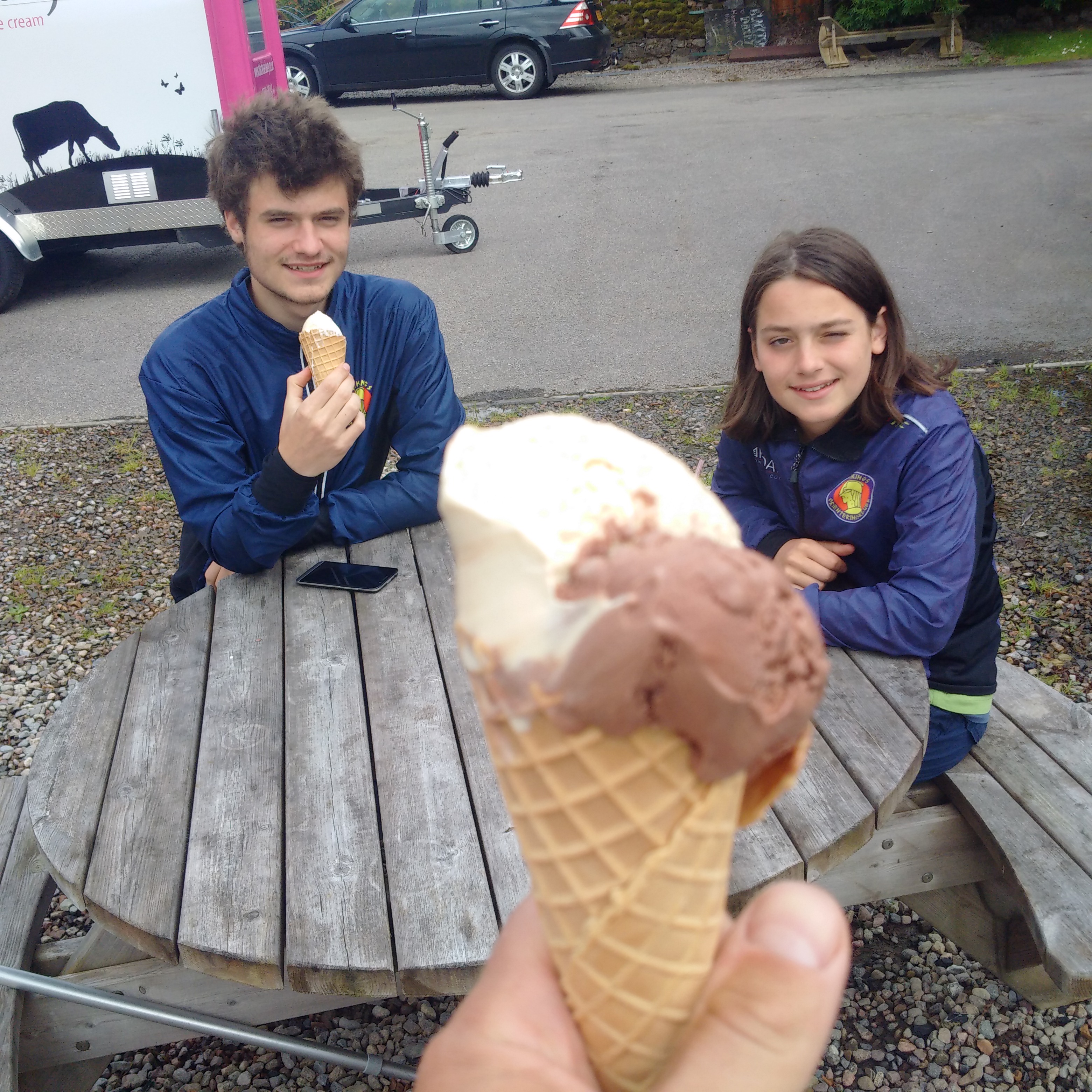 Vi väljer en annan väg hem, den vill aldrig sluta, det är mycket trafik, men till slut kommer vi hem ändå. Dusch, ombyte, och så drar vi iväg igen till Birchfield, 20 minuter nordväst om Killinghall där jag två dagar tidigare hade sett en skylt till en ”Ice Cream Farm”. Sådant måste ju undersökas, och det visar sig vara precis det – en bondgård som gör glass av sin egen mjölk och säljer denna mycket goda glass i en liten tea room, tillsammans med goda kakor och, såklart, te.