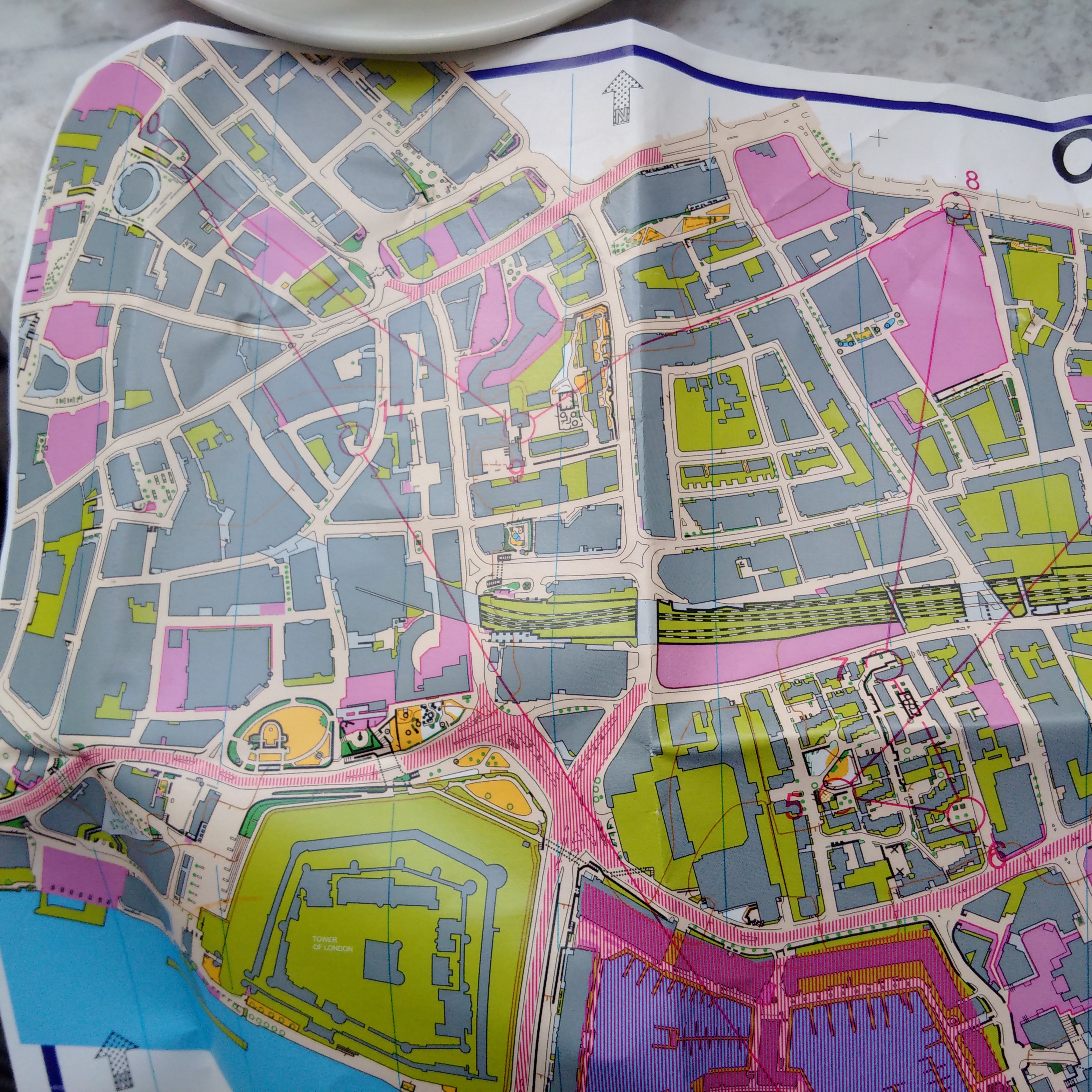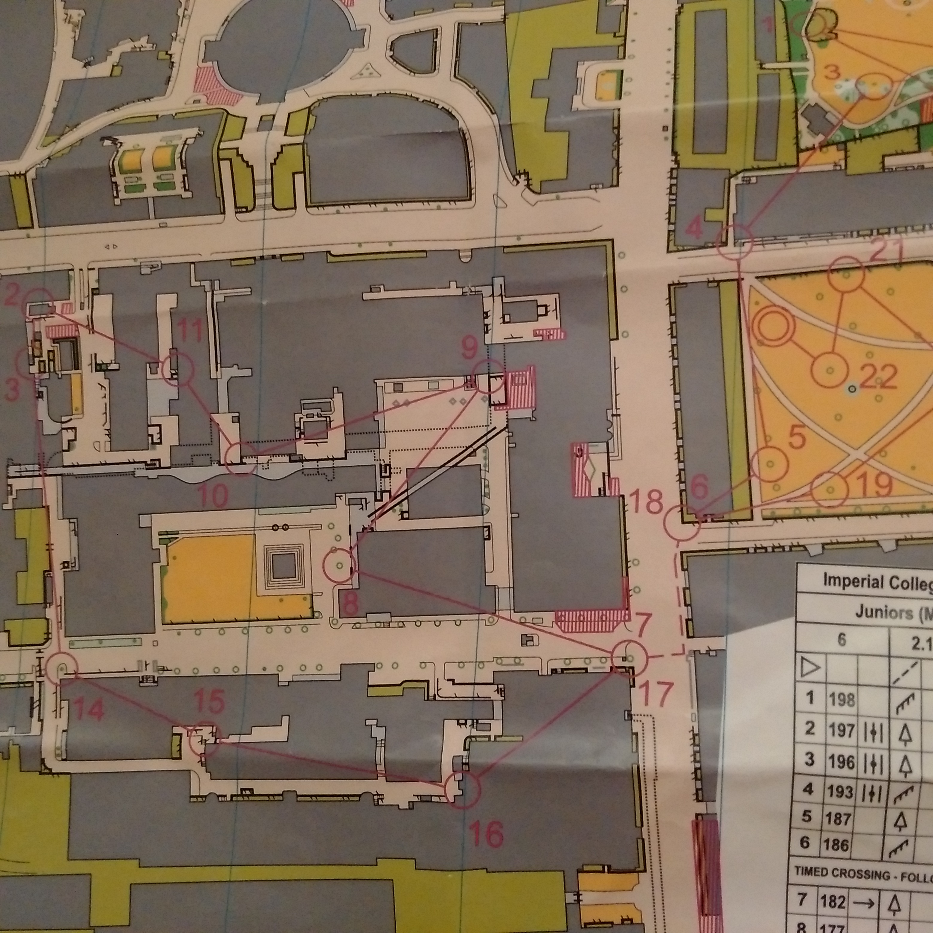 Det var sedan en promenad på ca 2 kilometer uppför backen till universitetsområdet. Solen hade kommit ut, och fast vinden var kall skulle det bli en rätt trevlig dag (resans bästa väder faktiskt med facit i handen). Sprinten liknade i mångt och mycket andra sprinttävlingar som vi har sprungit i Storbritannien, gamla fina tegelbyggnader i den äldre delen, och betonglabyrint i den nyare delen. Men faktiskt inte så lätt, då den nyare delen var byggt på flera nivåer, så det var mycket ”vad är uppe, vad är nere” man fick tänka. Och så var det nog så kuperat. Ingen av oss tog sig upp i övre halvan, men roligt var det, som det brukar vara ändå. Tim och jag tävlade sedan även i TempO på en gammal kyrkogård(!) i närheten, och där kom vi på övre halvan båda två.